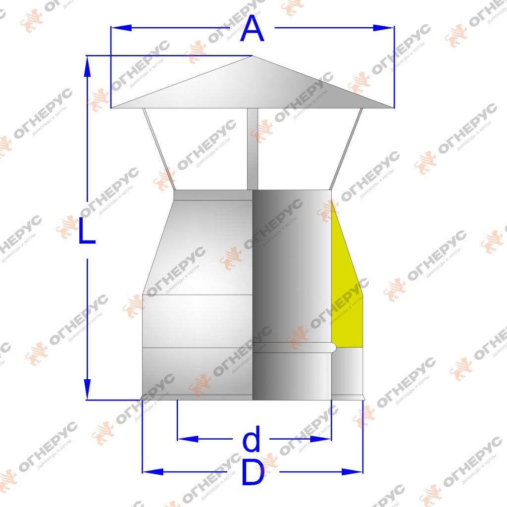 Зонт ТЕРМО является завершением наружного контура дымохода,  так же обеспечивает защиту дымового канала от атмосферных осадков.