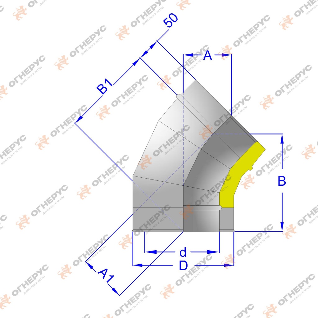 Отвод Термо 45º изменяет направление дымового канала на 45º градусов.