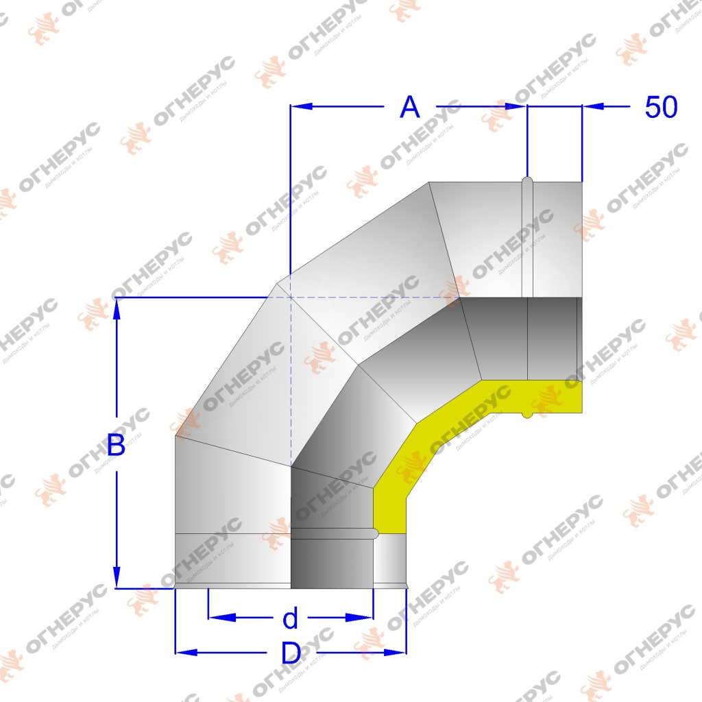 Отвод Термо 90º изменяет направление дымового канала на 90º градусов. Рекомендуется: для уменьшения сопротивления проходу дыма использование Отводов 45º и длина  горизонтального участка не более одного метра.
