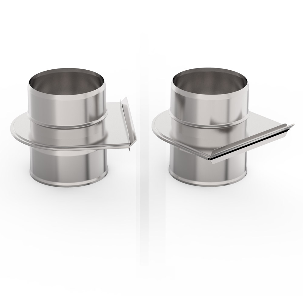 Заглушка с конденсатоотводом предназначена для обслуживания дымохода и слива конденсата. Заглушка выполнена из нержавеющей стали толщиной 0,5 мм.
