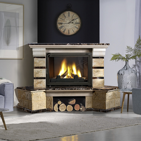 Каминная облицовка LK Victoria Emperador Gold выполнена из натурального камня песчаник грубой обработки и мрамора Emperador Gold, с применением высококачественных клеящих смесей.