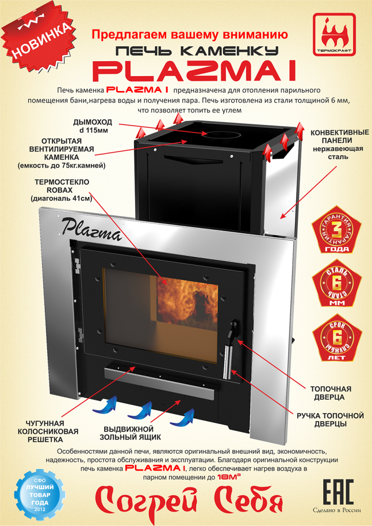 Печь для бани Plazma – это классическая печь-каменка, с открытой вентилируемой каменкой, изготовленная из конструкционной стали толщиной 4 мм.