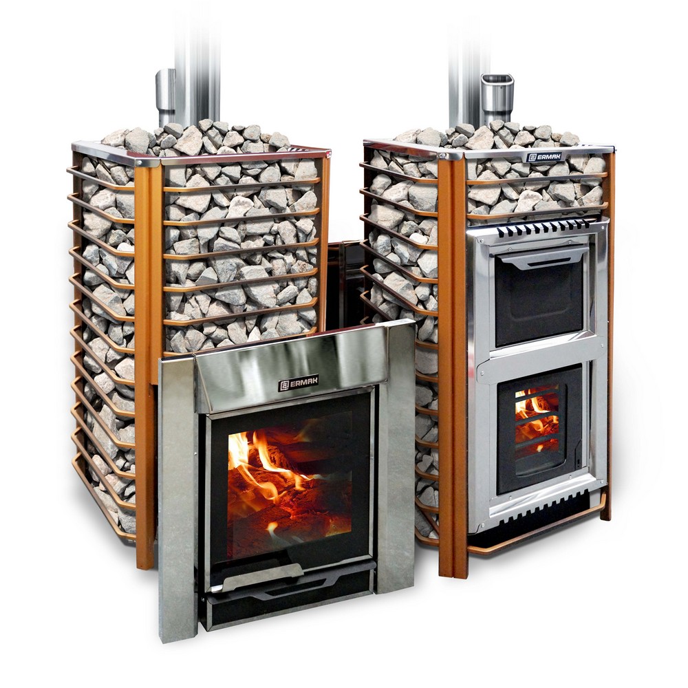 В модели печи Ермак-12 материалом для изготовления топки является сталь толщиной 6мм, а для корпуса и системы газоходов применена сталь 4 мм, футерованная до 6 мм в местах наибольших термических нагрузок. Компактность, жесткость конструкции, развитая система теплопередачи выделяют печи-каменки для бани "Ермак" среди аналогов.